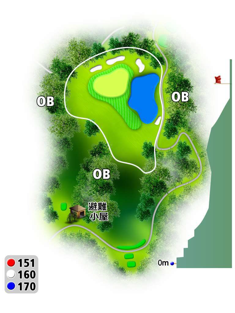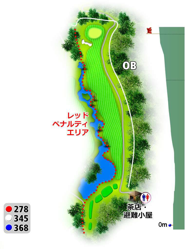 ・グリーンは奥に広いのでピンの位置に注意。BACK REGULAR LADIES 345 325 276 -