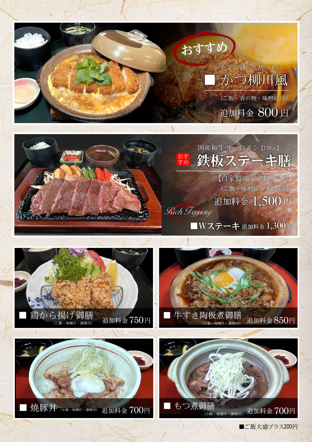 料理長自慢のメニューをどうぞお召し上がりください。
