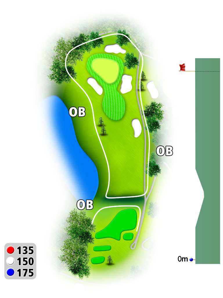 ・ティーショットは、グリーン左側に打つと谷が気になるので右側を狙う。