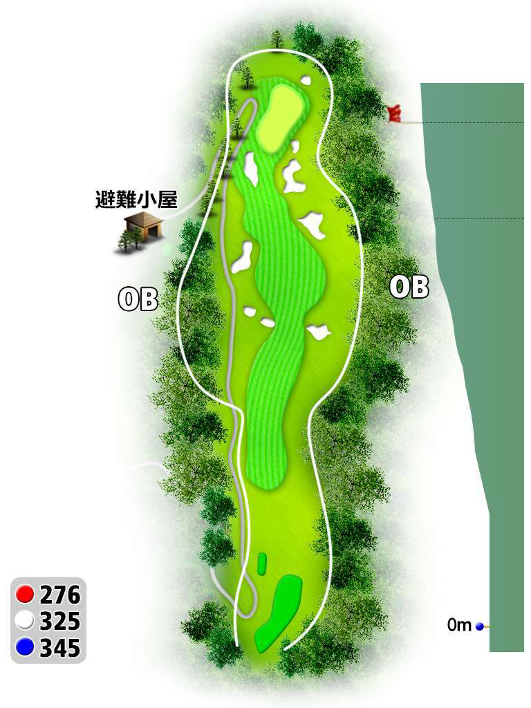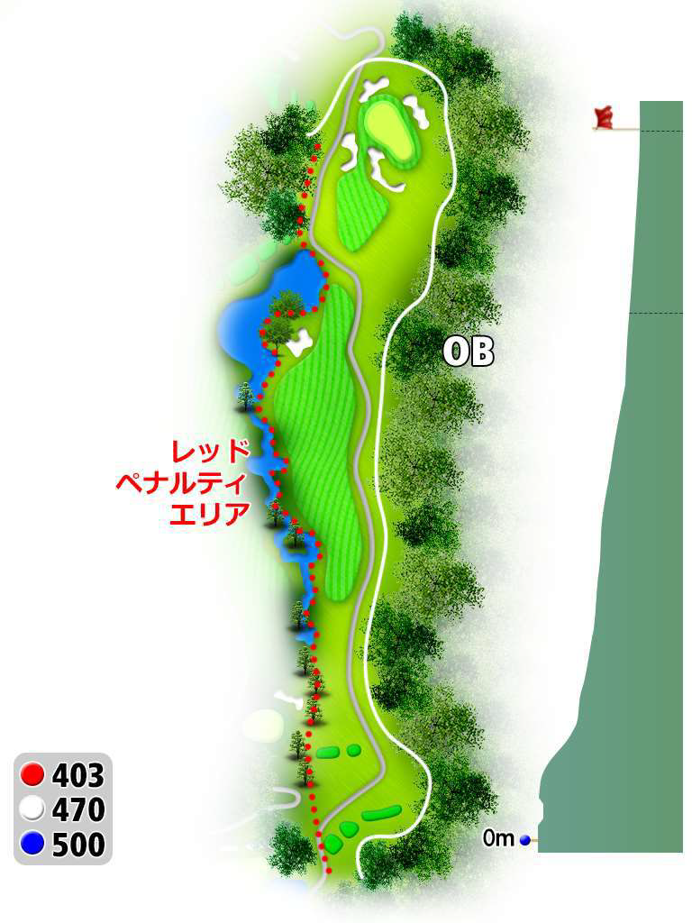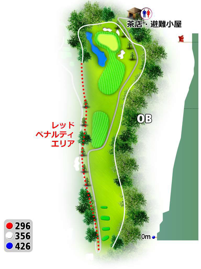 ・グリーンは奥に広いのでピンの位置に注意。BACK REGULAR LADIES 345 325 276 -